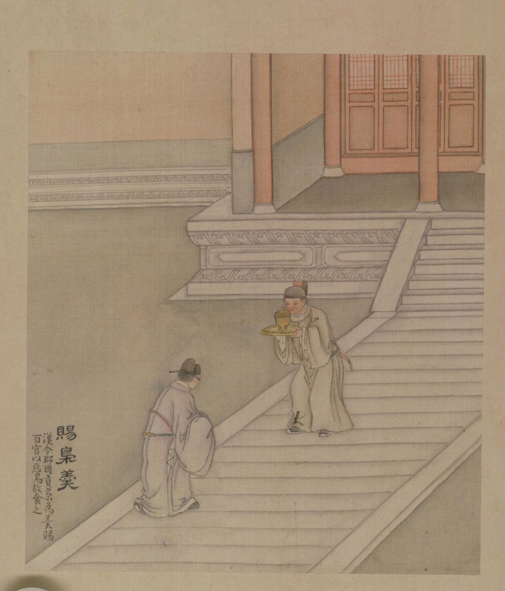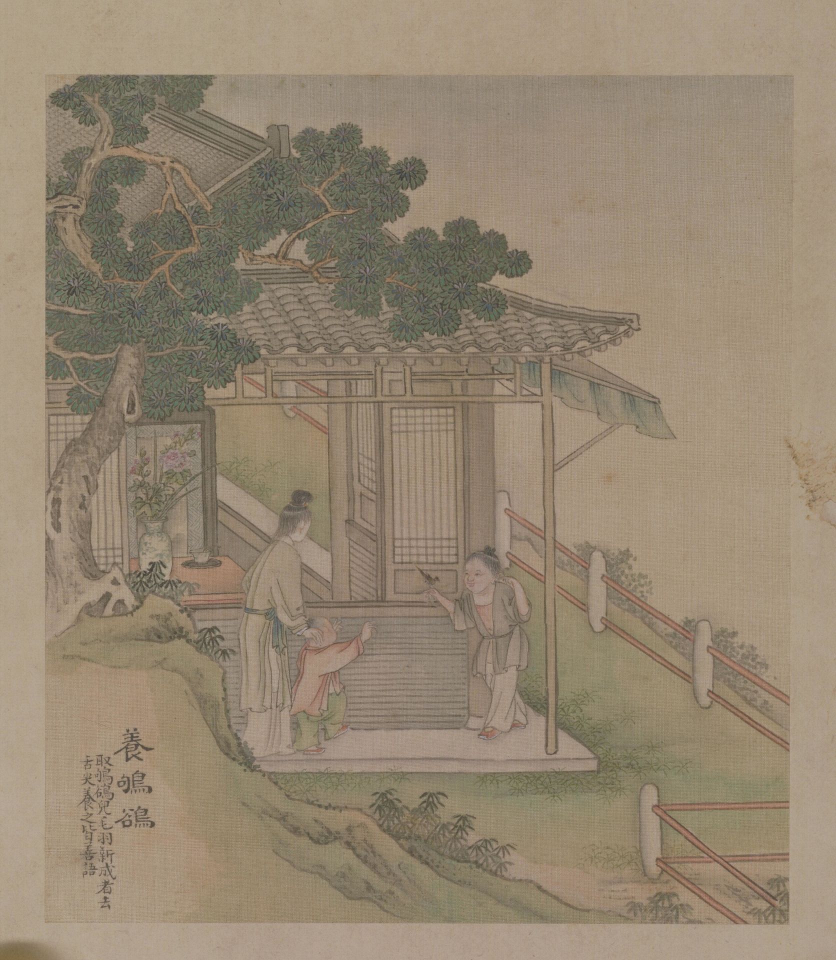 此图册构图严谨精妙,人物造型秀逸生动,线条遒劲流畅,色彩明丽典雅,显示出作者较强的写实功底和乾隆朝宫廷绘画工整清丽的笔墨特点。(介绍参考:李湜)