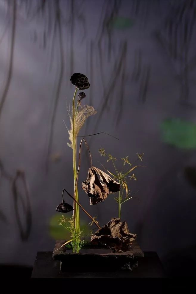 心象花无论是在创作上,还是在花材的选用上,都注重一种浪漫感和仪式感,视觉上更加疏远静谧,手法上更加简约留白,符合文人的心境。