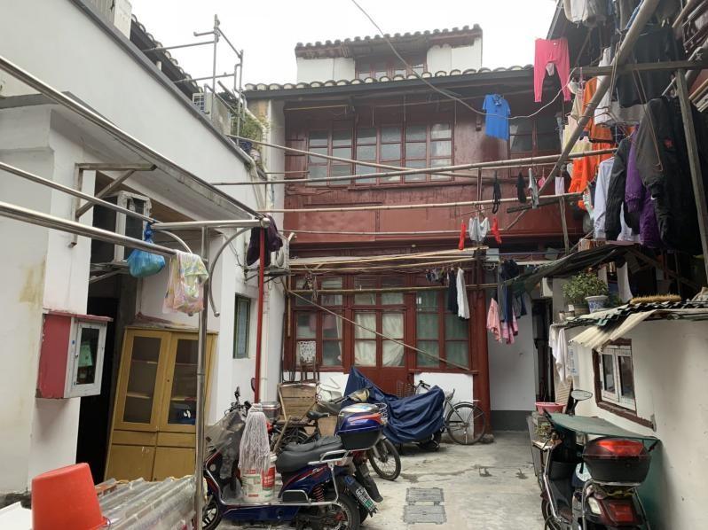 大院原本有12米高的围墙,已被拆除,从七开间的前埭正中墙门洞入内后,里面豁然开朗,是一个敞开的一正两厢三合院院落,属于上海市中心稀缺的二层双绞圈房,弥足珍贵。