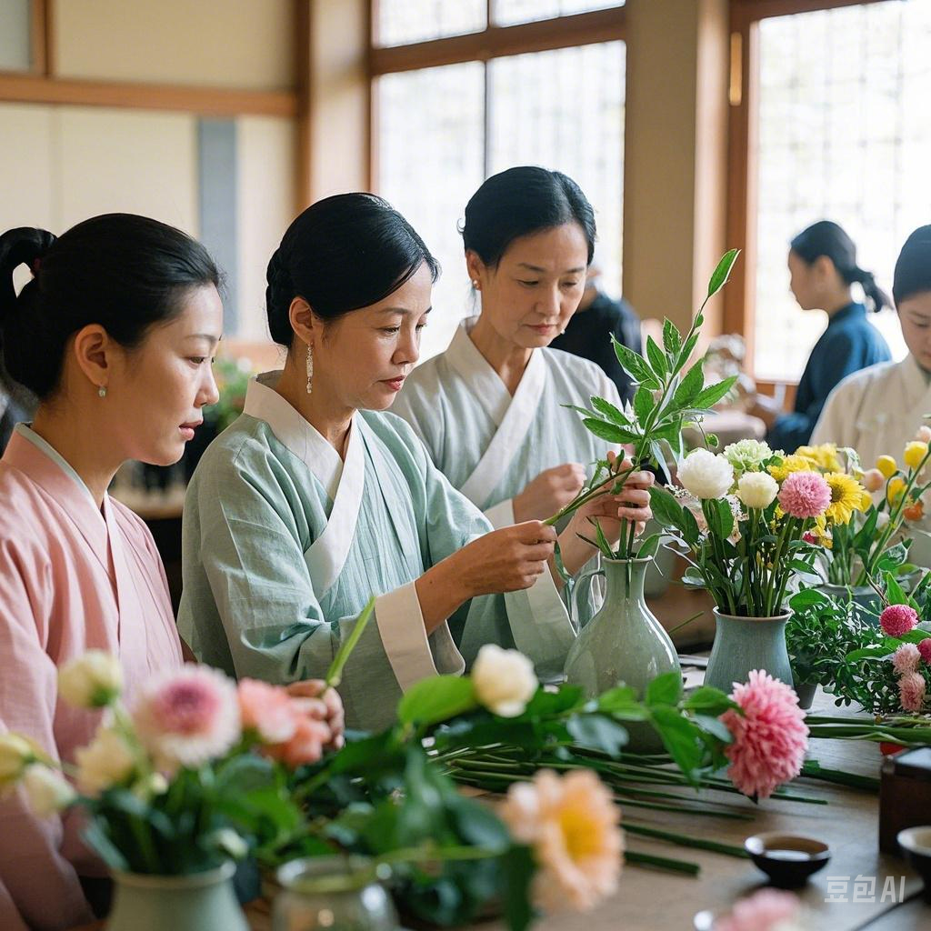 中国传统插花见习课程逢单月第一个周六开课,连续一周时间。